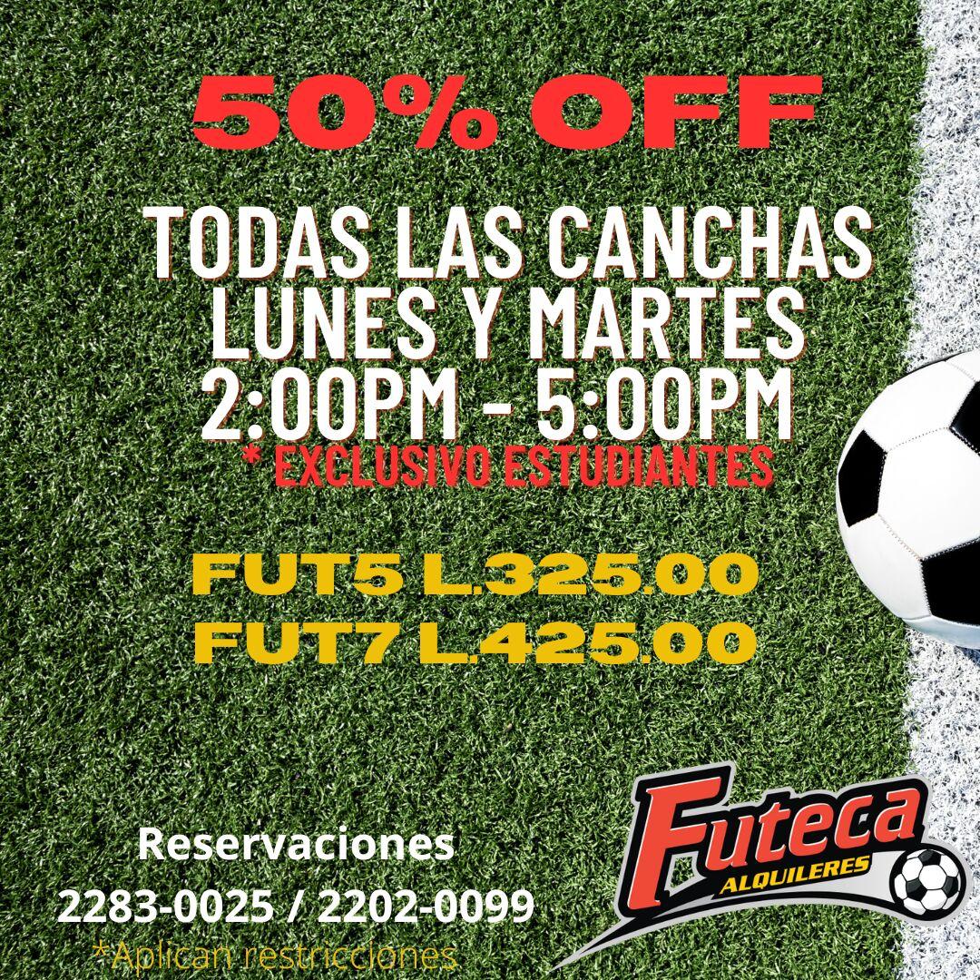 Siendo los pioneros en introducir el campo FUT7, permitiendo jugar con 8 ó 9 jugadores por equipo. Las mismas están equipadas con grama sintética de la más alta tecnología de punta y con la iluminación adecuada para puedas desarrollar el mejor futbol que hay en ti. Las canchas FUT7 tienen una medida de 33 x 52 metros cada una.